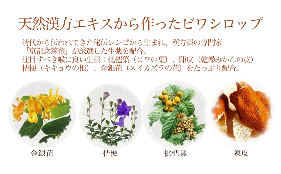 天然ハーブとハチミツで精製する枇杷シロップであります。唾液を分泌させて渇きをいやします。キャリーバッグで持ちやすく、気軽く飲めます。