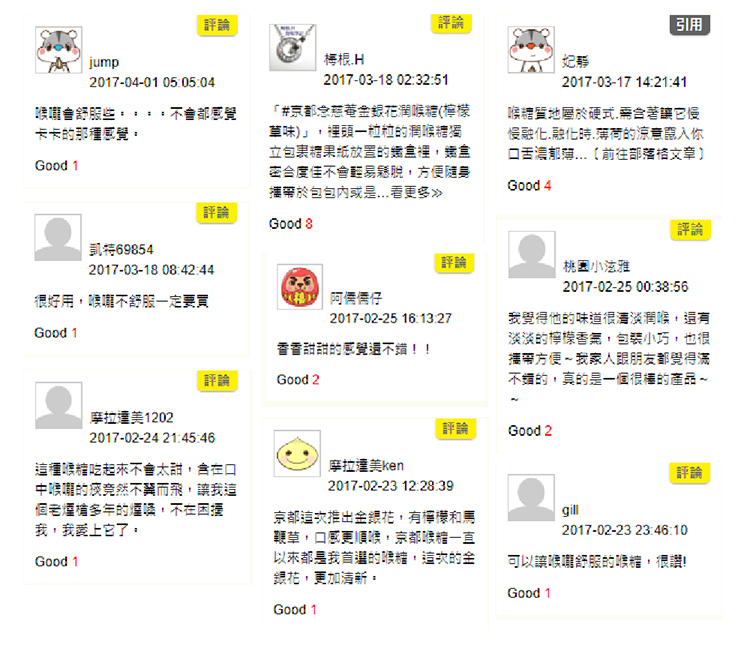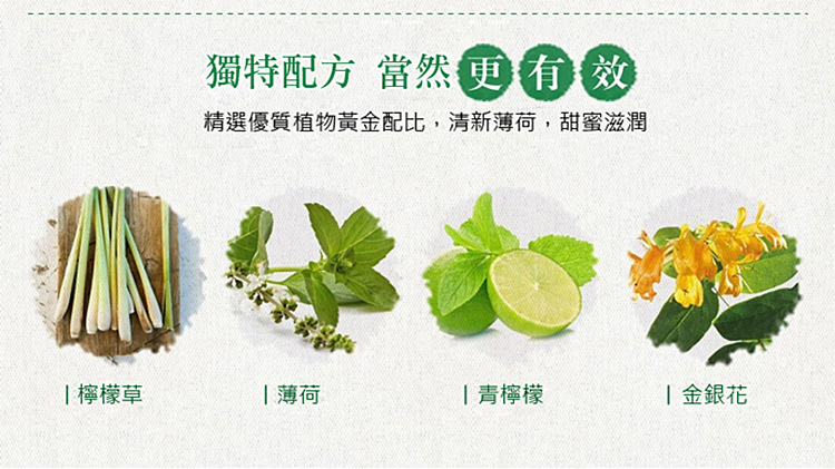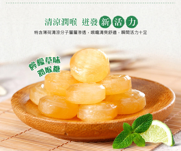 砂糖、ブドウ糖、ハーブ抽出物(スイカズラ花、キキョウ根、リコリス根、レモングラス、ライム)、香料、酸味料