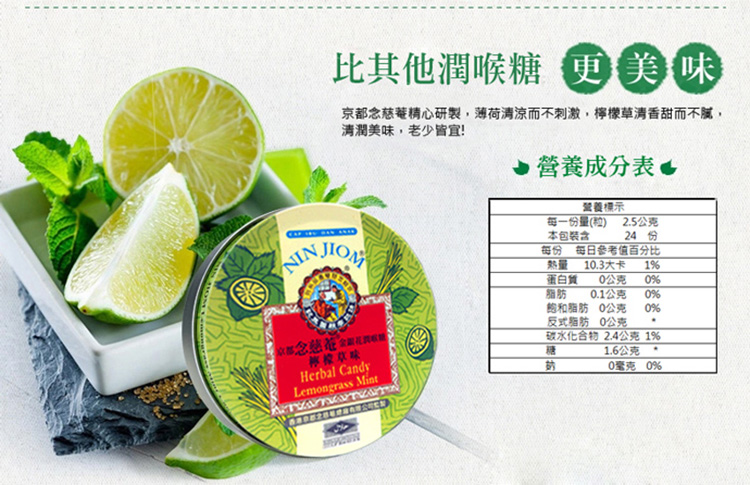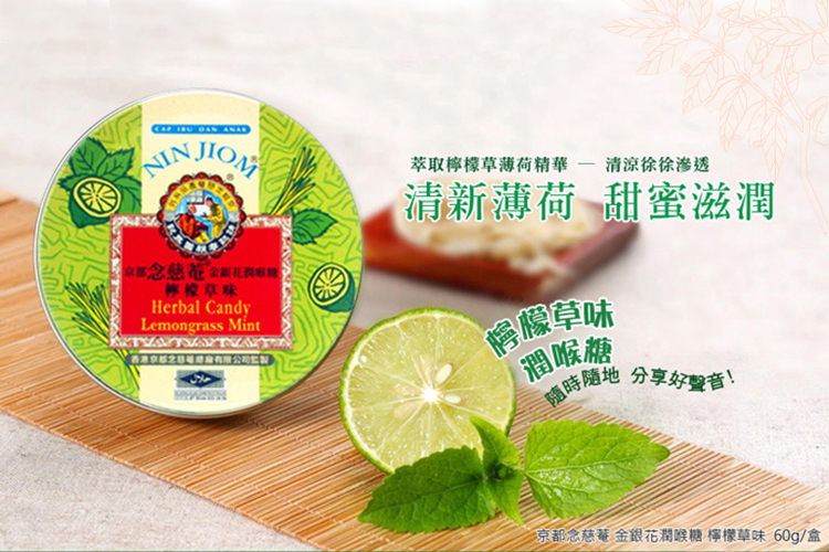 《京都念慈菴》金銀花潤喉糖【レモングラス味】缶入60g