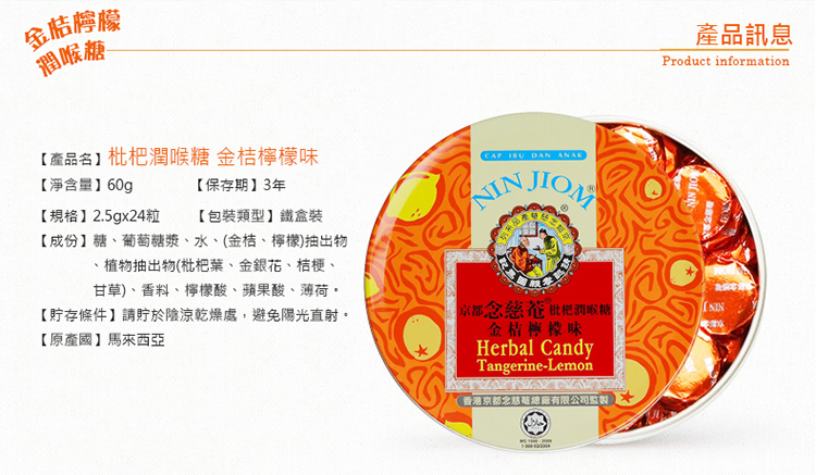 《京都念慈菴》枇杷潤喉糖【キンカンレモン味】缶入60g